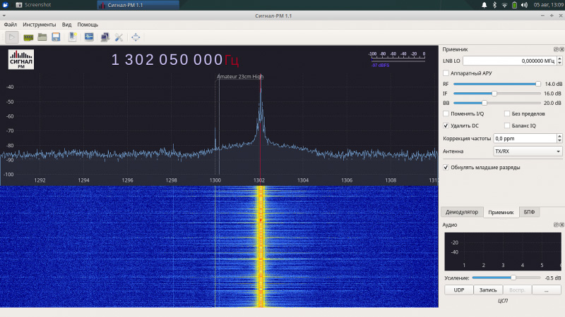 | Чувствительность | Есть регулировка усиления радиочастотного тракта и демодулятора |