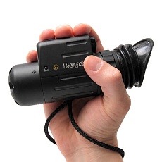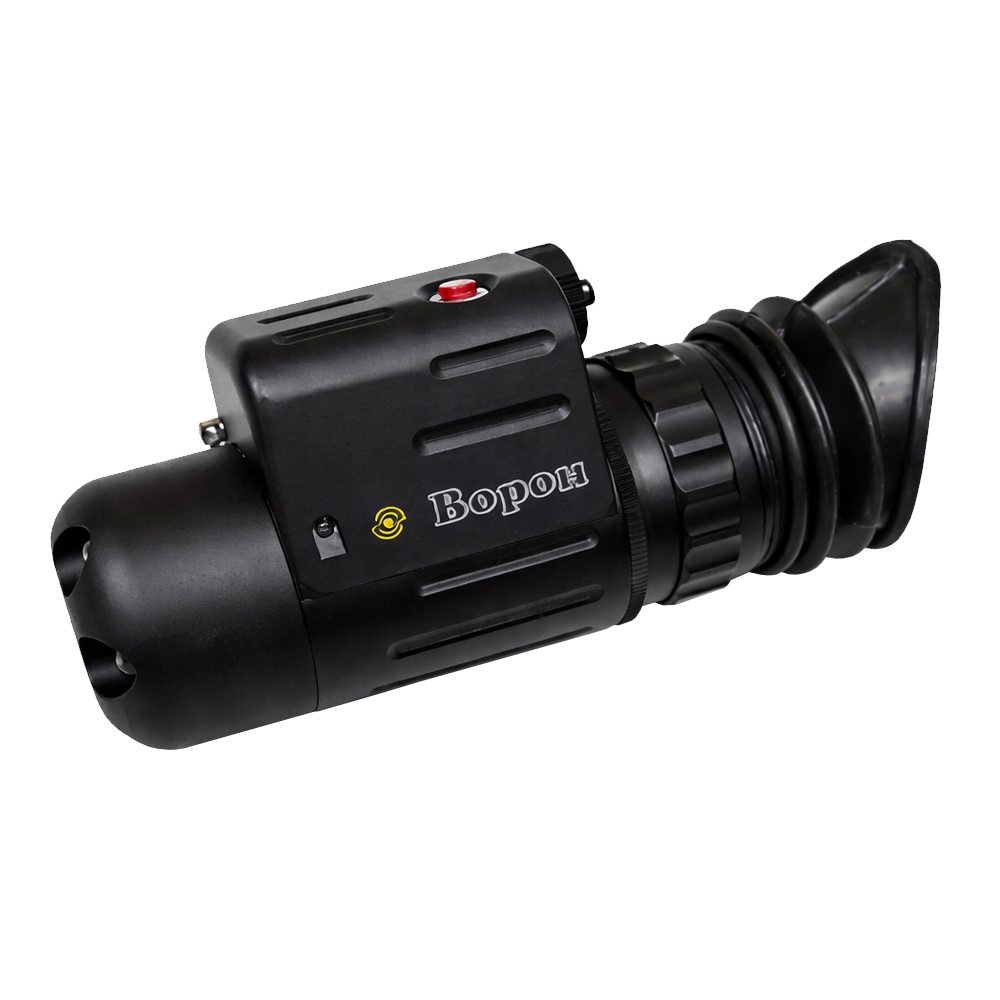 - Обнаружитель видеокамер "Ворон" – выполнен в виде монокуляра с лазерной подсветкой. У “Ворон” одинаковые с “Оптиком” параметры по углу обзора и дальности выявления. В отличие от “Оптика”, “Ворон” находит любые типы микровидеокамер, установленные в помещении, расположенные за стеклом или принесенные на теле человека. С детектором “Ворон” необходимо работать при естественном свете, тогда как “Оптик” будет хорошо работать и при искусственном освещении.