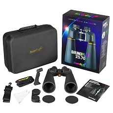 Бинокль Levenhuk Bruno PLUS 25x70 Астрономический, увеличение 25x, объективы Ø70 мм, призмы Porro BaK-4, узкий угол зрения 2.6°, влагозащита IP67, азотное заполнение, кейс в комплекте