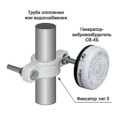 Тип 5 Фиксатор "труба 1/2..3/4" – предназначен для крепления генераторов-вибровозбудителей к трубам отопления, газовым трубам, жестким кабель-каналам и т.д.